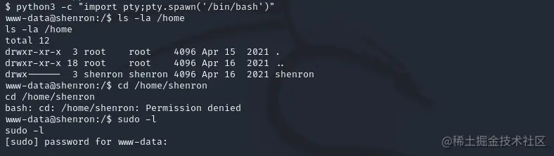 2.找了一通没找到可利用信息,而且我进不去shenron用户下,只能靠运气把唯一的密码输入进去试试。