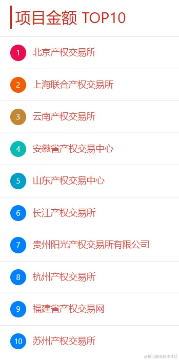 本周交易机构新增披露项目量排名TOP10有:北京产权交易所、上海联合产权交易所、云南产权交易所、山东产权交易中心、江苏产权市场网、浙江产权交易所、天津产权交易中心、南方联合产权交易中心、河南省产权交易中心、昆明联合产权交易所