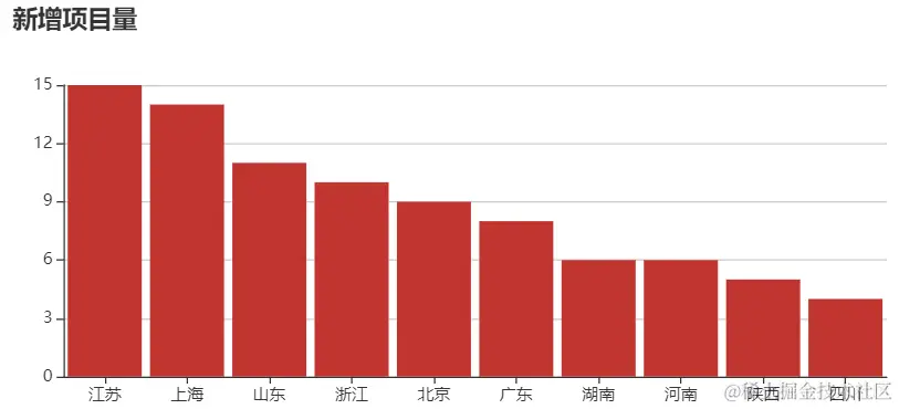 本周新增项目量的地区TOP10:江苏、上海、山东、浙江、北京、广东、湖南、河南、陕西、四川