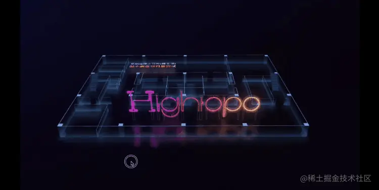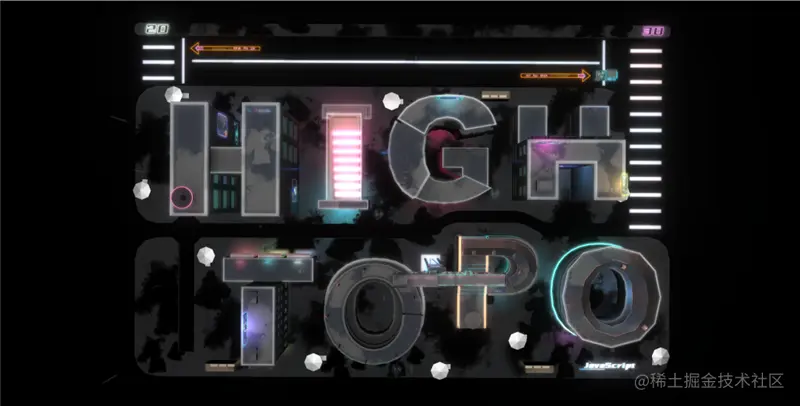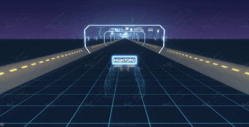 设计师充分利用图扑软件的辅助优势,并以 “HIGHTOPO” 为设计对象,设计生成 3D 赛博朋克城市夜景。Demo 选用暗黑、紫红、荧光蓝等颜色碰撞,描绘出极具未来感的个人理想城市。