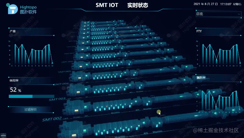 图扑软件也同样在践行这种赛博朋克美学。并通过自主研发的 HT for Web 产品,数字孪生智能工厂、智慧城市、智慧航空、智慧电力、智慧园区、智慧楼宇等,将工业互联网的赛博语言娓娓道来。