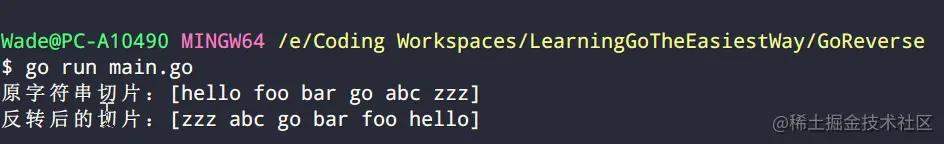 但是,上面的 reverse 函数都是通过切片按值传递,其实我们在修改传递中的 []string 切片,实际上,可以通过以下方式进一步简写: