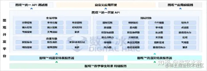 图观 统一开发 API 是一套基于 JavaScript 语言开发的二次编程接口,用于在现代浏览器中加载、显示 图观引擎 发布的 流渲染 或 端渲染 三维场景,并且为开发者提供在场景中绘制业务数据、触发场景交互、控制场景逻辑的功能。