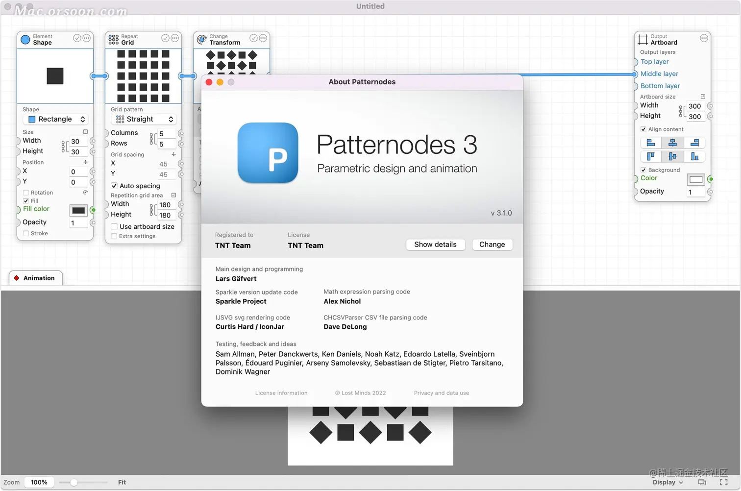 虽然该软件可用于创建多种类型的插图和动画,但主要是针对图案创作。为了使模式创建更容易,PatterNodes还包含许多节点,它们自动执行常见的繁琐任务,如在瓦片边缘重复元素以使图案无缝,或随机化元素的不同方面(如颜色,位置,旋转角度等)模式给它一点生活。