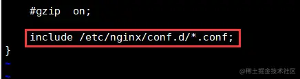include /etc/nginx/conf.d/*.conf; //可以看到在/etc/nginx/conf.d/目录下还有配置文件