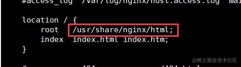 root /usr/share/nginx/html; //站点目录,即首页文件的默认存放目录