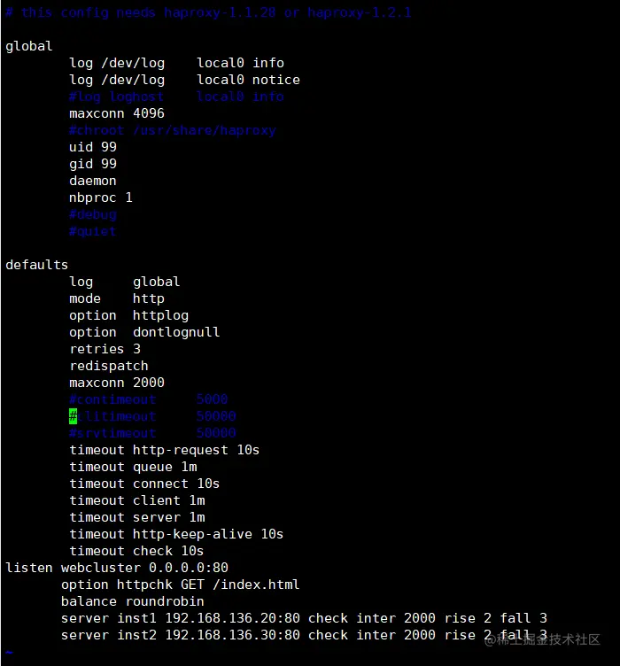 vim /etc/haproxy/haproxy.cfg