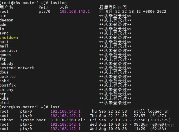 使用lastlog或者last命令查看登录情况,是否有异常登录情况,查看是否有可疑用户,删除userdel -r 用户名