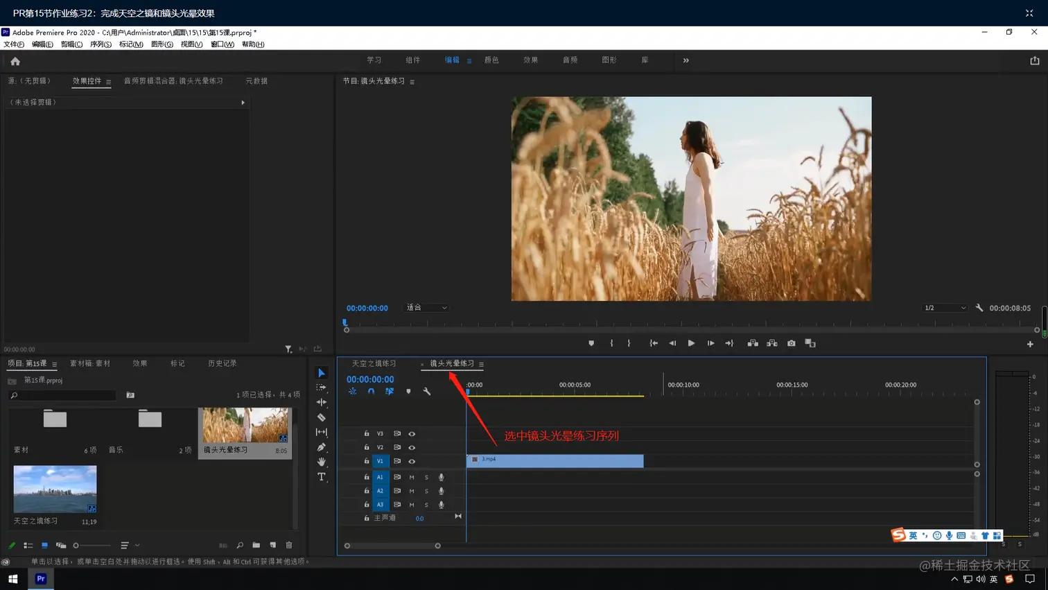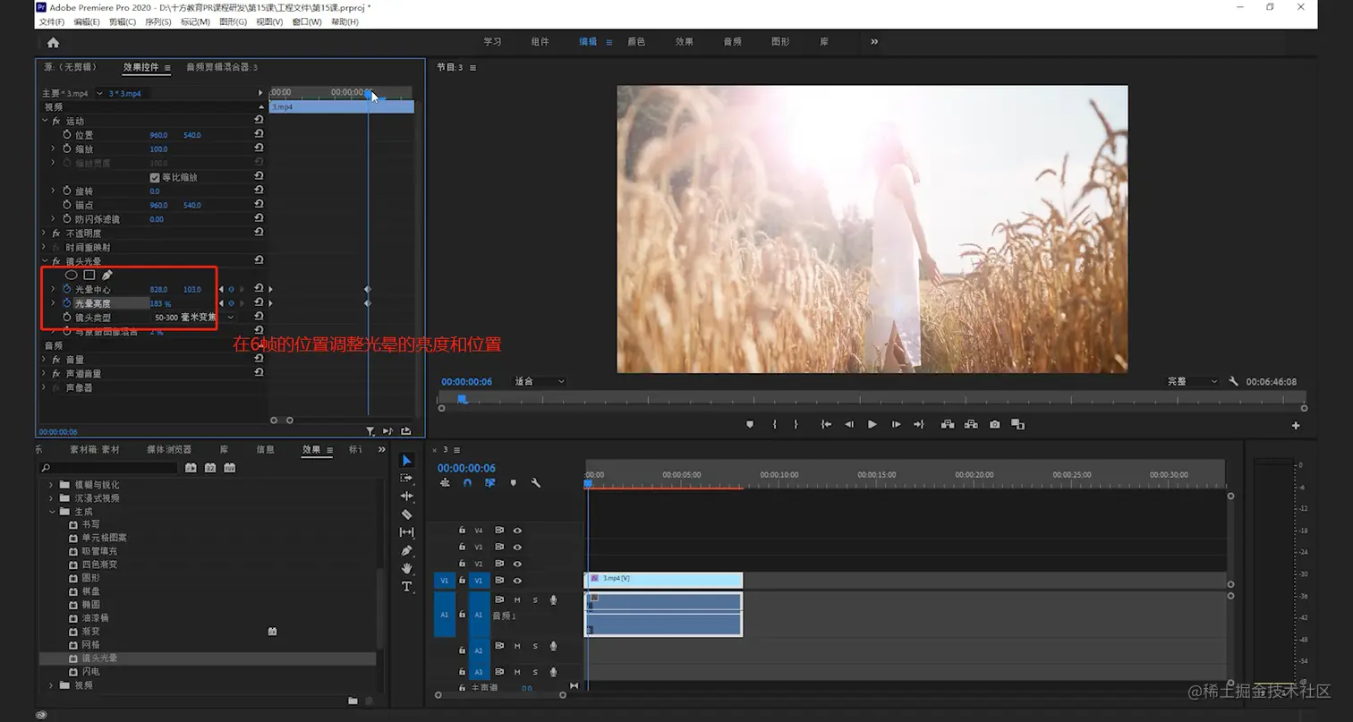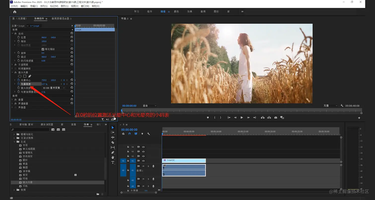 - 点击镜头光晕练习序列