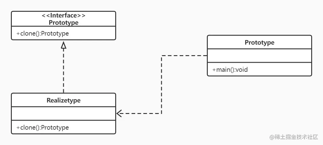 - 抽象原型类:规定了具体原型对象必须实现的clone()方法。