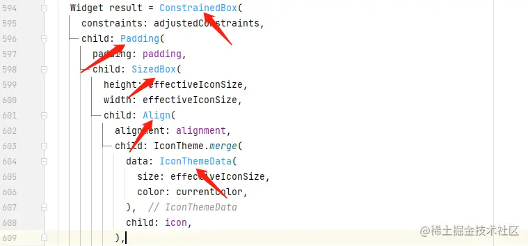如下是非 useMaterial3 时的主要构建逻辑,主题部分使用 ConstrainedBox 、Padding 、SizedBox、Align 、IconTheme 组合构建: