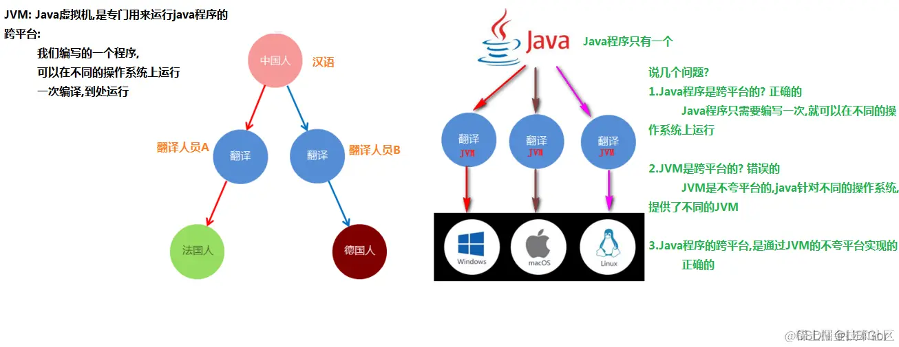 JVM: Java虚拟机,是专门用来运行Java程序的,但是不能单独安装