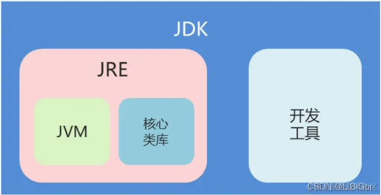 JRE: Java运行环境,包含JVM(Java虚拟机,是专门用来运行Java程序的)和核心类库