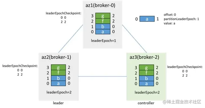 待数据同步后,加入 isr,并更新 isr 为 [1,2,0]。之后在触发 preferredLeaderElection 时,broker-0 再次成为 leader,并增加 leaderEpoch 为 3