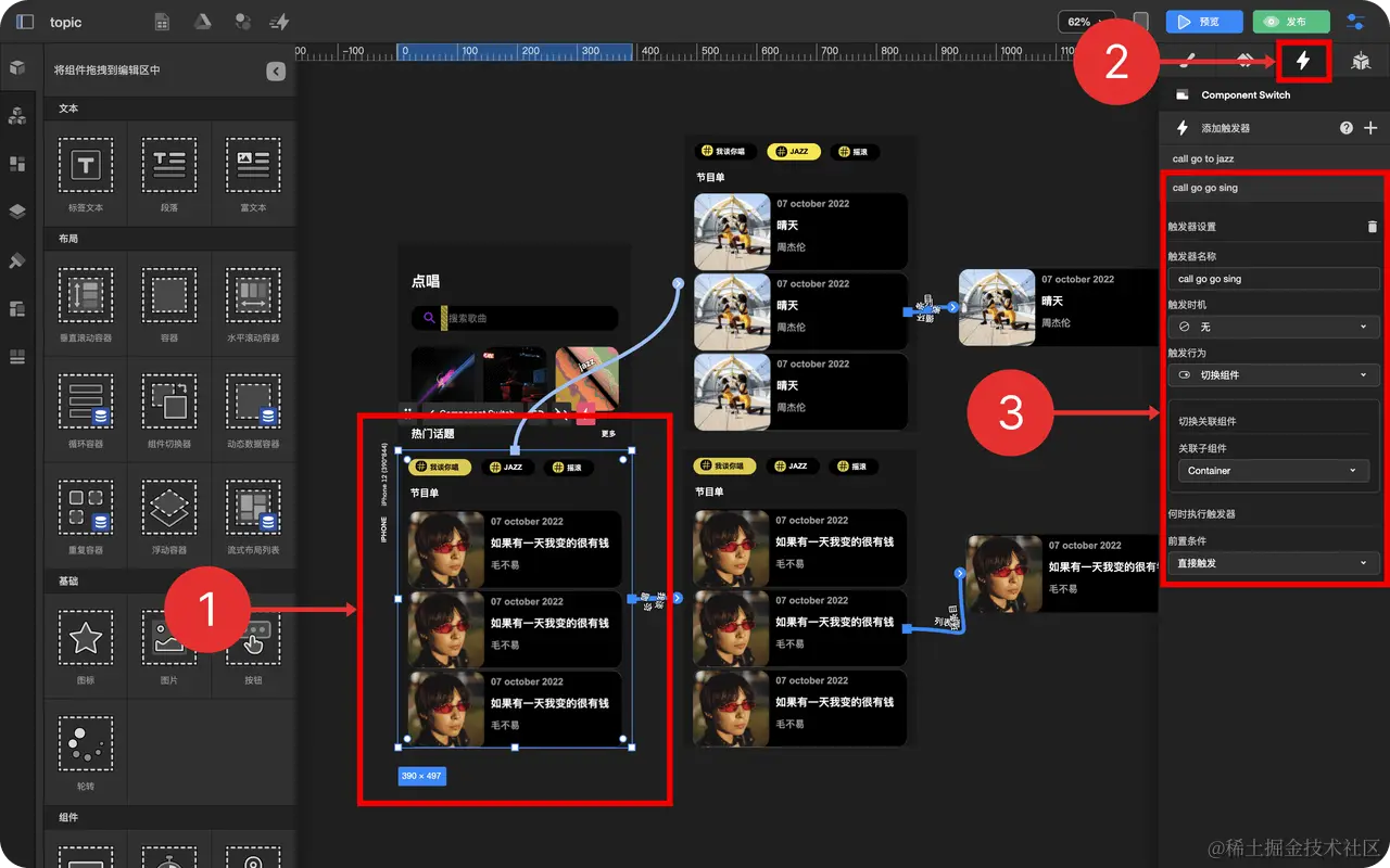 - 设置组件切换器关联内容