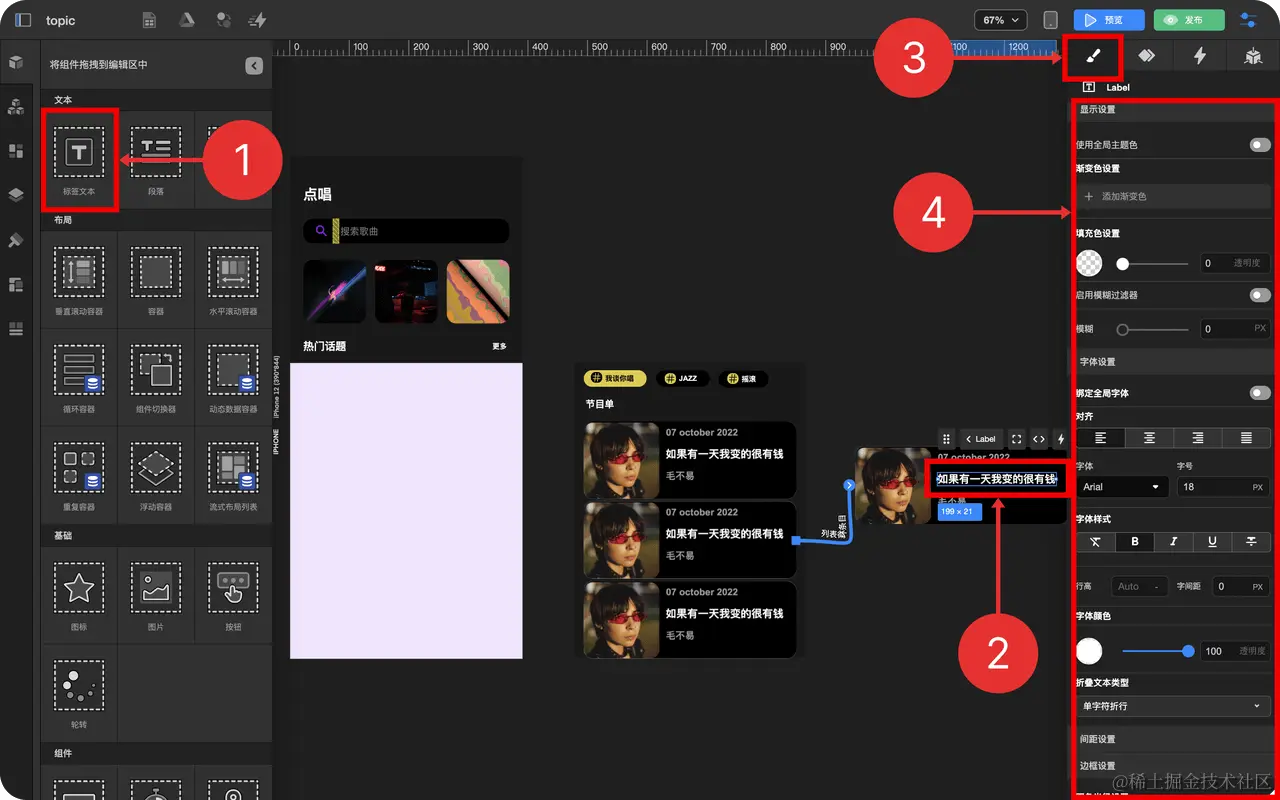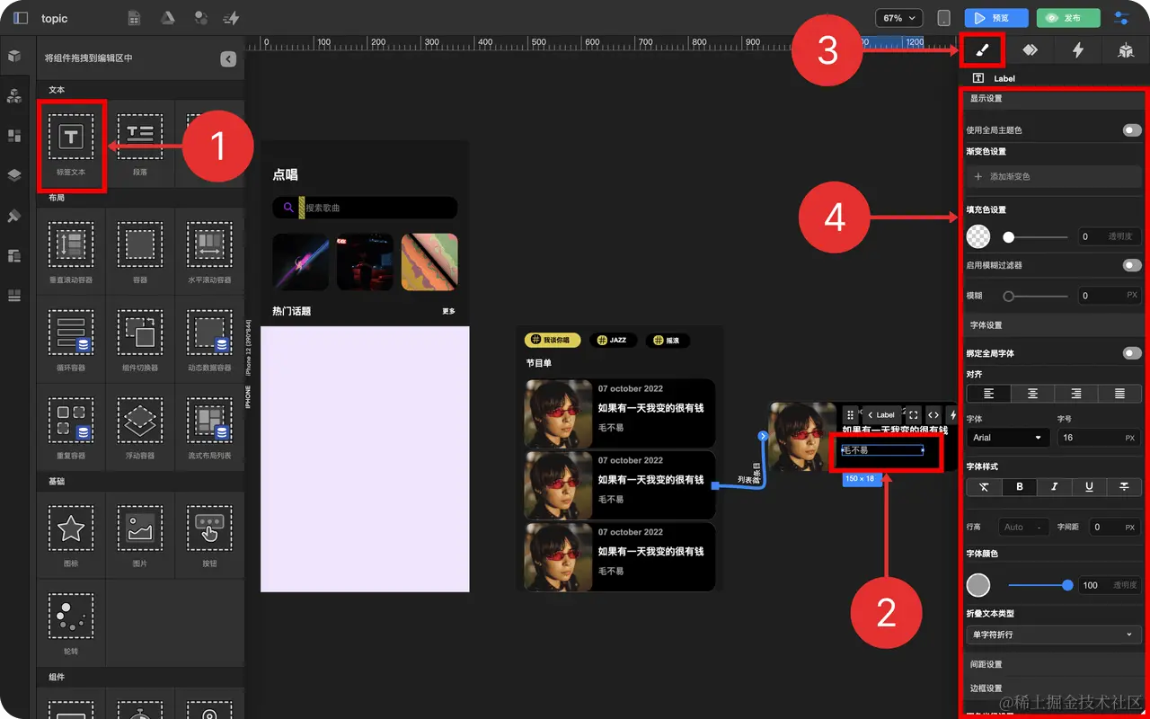 - 拖拽 标签文本 到 循环列表项