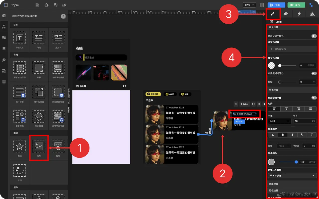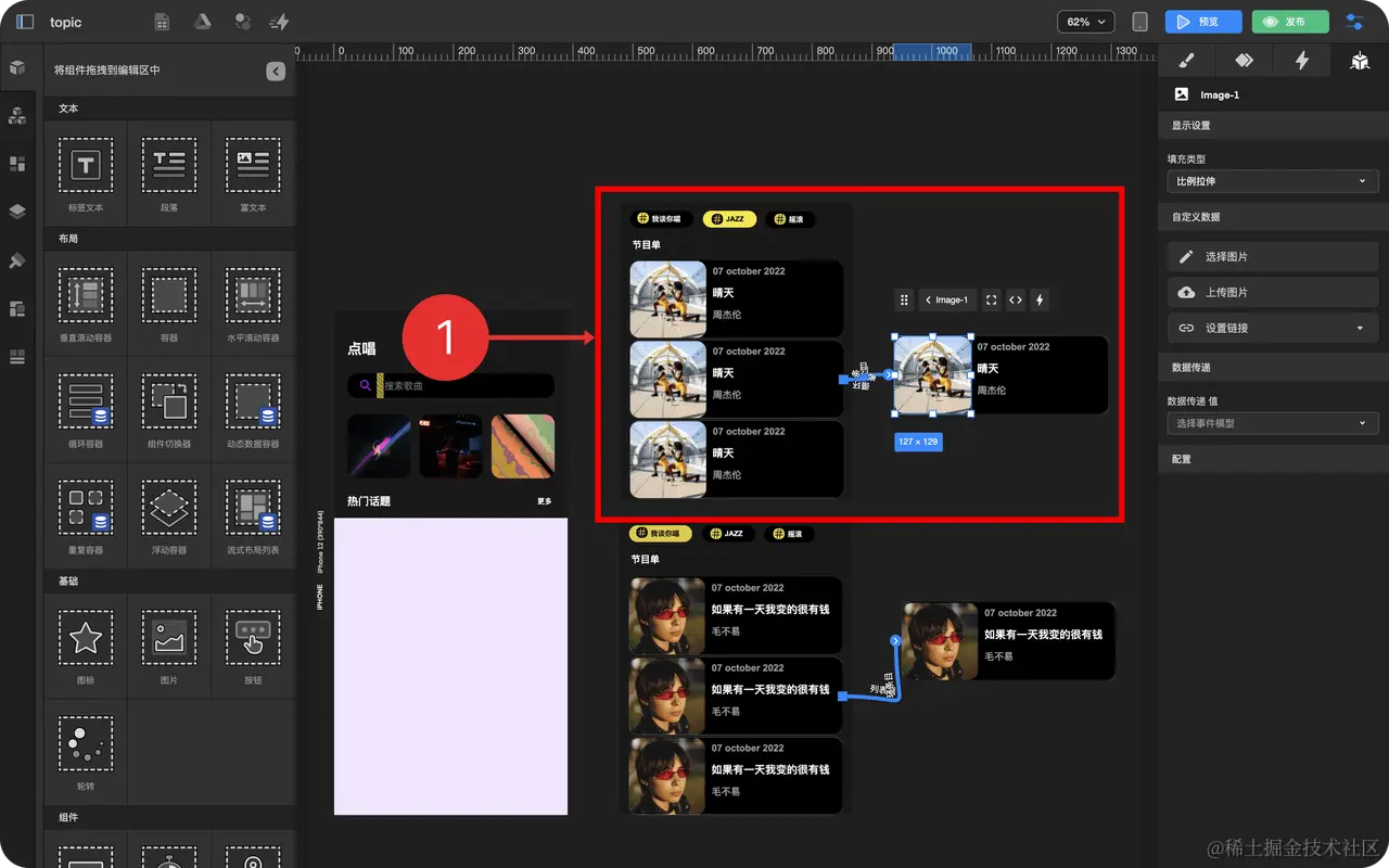- 拖拽 图片组件 到 循环列表项