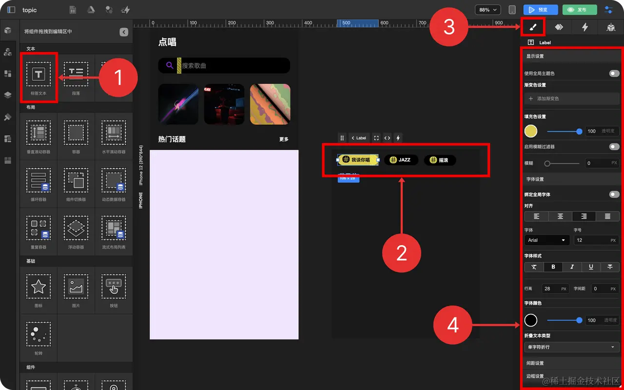 - 将话题图标素材添加到 标签文本 中