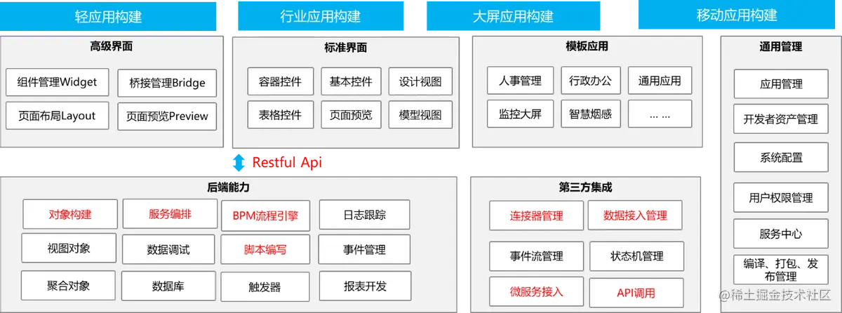 Gartner认为零代码是低代码的一部分。部分业务人员也可以用低代码平台构建出相关的应用,但这部分业务人员通常也受过软件开发相关的教育和训练。国内现在零代码比较多,大家倾向认为业务人员可以使用零代码去开发,这个现象也确实存在。但就像我上期说的,我们看待低代码要回归理性。应用中要用到的函数、算法,尤其是比较核心的算法,不适合使用低代码开发。低代码更适合以微服务的方式去“调用”这些能力,而不是去“开发”这些能力,否则效率会比较低下,不建议。