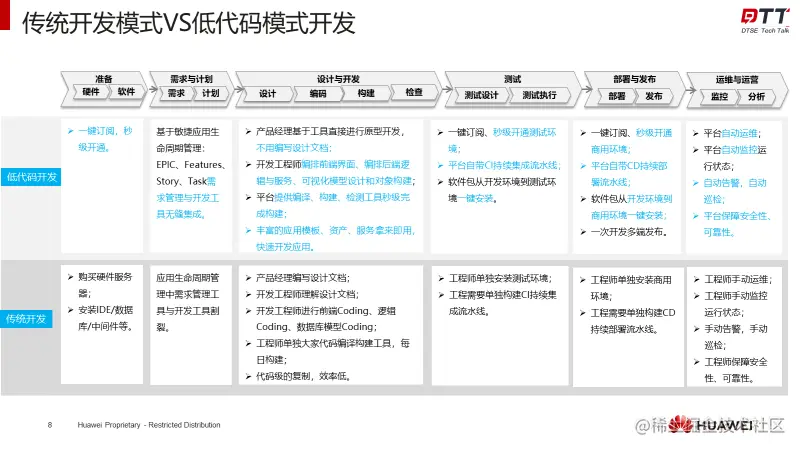 相对传统开发方式而言,低代码在软件开发全流程中的差异点大致如下:
