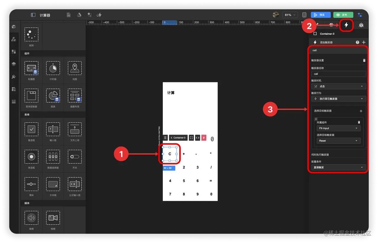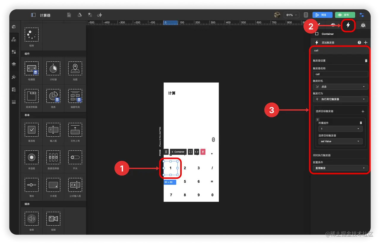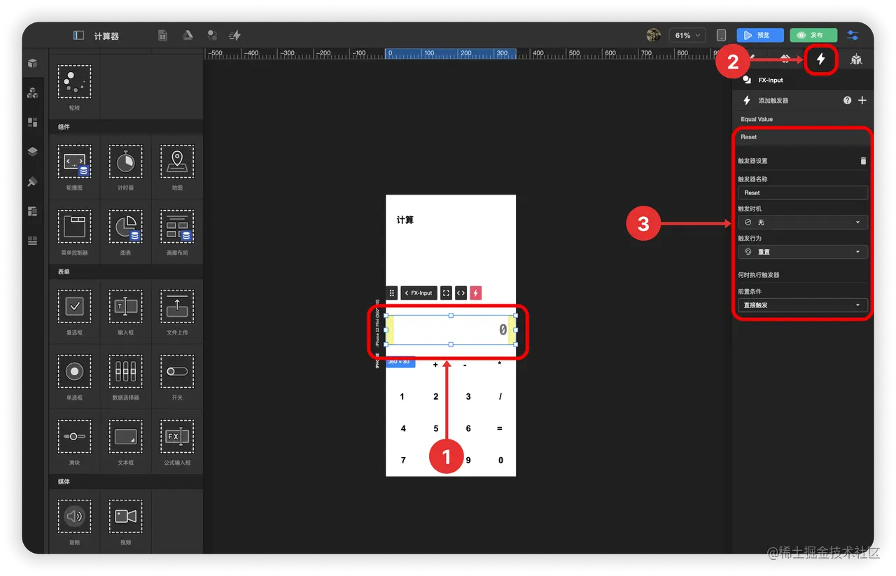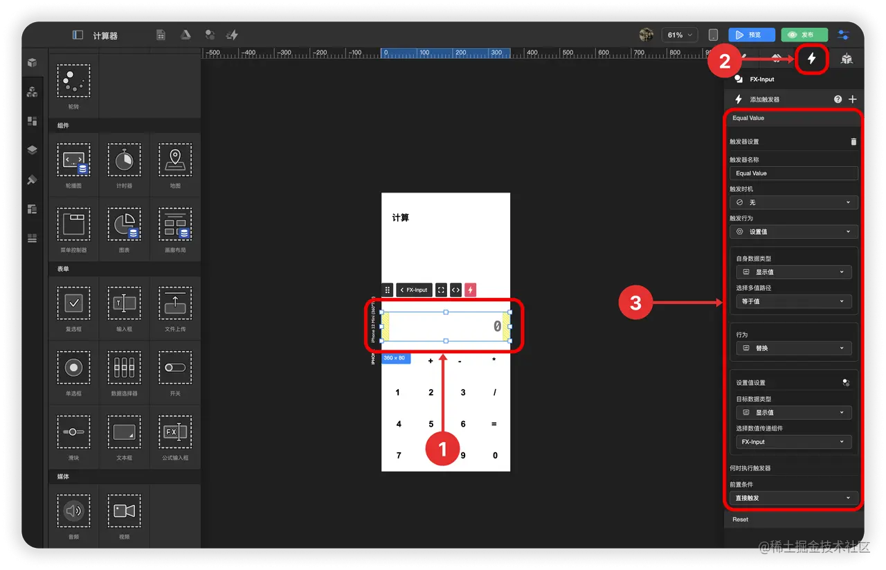 通过使用公式输入框,配置设置值触发器实现一个计算机