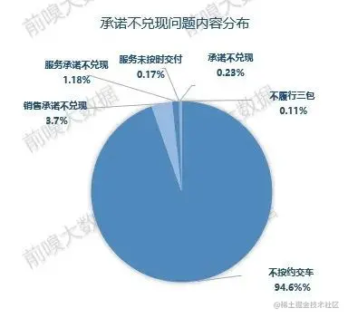 在承诺不兑现问题中,用户投诉最多的是不按时交车问题,占94.6%。