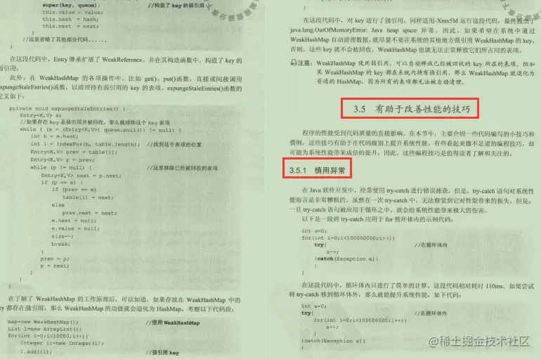 持续地优化代码,提高代码的质量,是提升系统生命力的有效手段之一。软件系统思维有句话“Less coding, more thinking(少编码、多思考)”,也有这么一句俚语“Think more, code less(思考越多,编码越少)”。所以,我们在编码中多思考多总结,努力提升自己的编码水平,才能编写出更优雅、更高质、更高效的代码。 在JAVA程序中,性能问题的大部分原因并不在于JAVA语言,而是程序本身。养成良好的编码习惯非常重要,能够显著地提升程序性能。