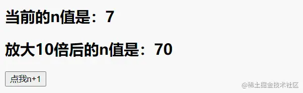 <!DOCTYPE html><html> <head> <meta charset="UTF-8" /> <title>自定义指令</title> <script type="text/javascript" src="../js/vue.js"></script> </head> <body> <!-- 准备好一个容器--> <div id="root"> <h2>当前的n值是:<span v-text="n"></span> </h2> <h2>放大10倍后的n值是:<span v-big="n"></span> </h2> <button @click="n++">点我n+1</button> </div> </body> <script type="text/javascript"> Vue.config.productionTip = false