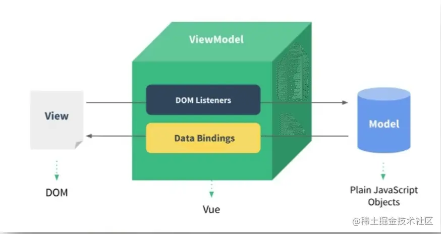 概述:参考MVVM模型,应用到VUE中