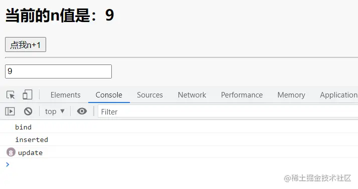 }, //指令所在的模板被重新解析时 update(element,binding){ element.value = binding.value console.log('update');