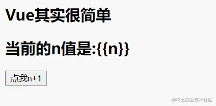 <h2>Vue其实很简单</h2><h2 v-pre>当前的n值是:{{n}}</h2><button @click="n++">点我n+1</button>