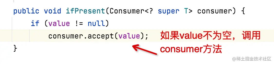 说明: 如果存在值,则调用对应的 consumer 方法,否则不执行任何操作。