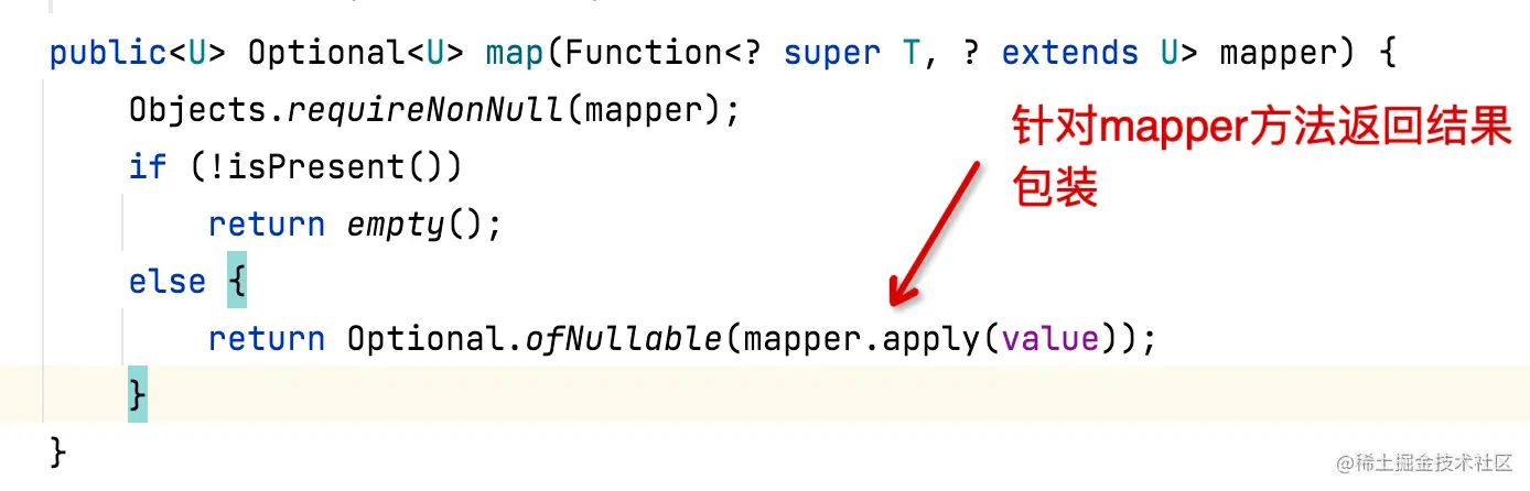 Optional map(Function<? super T, ? extends U> mapper)