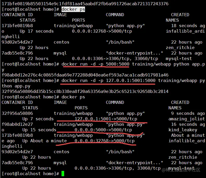 docker run -d -p 127.0.0.1:5001:5000 training/webapp python app.py