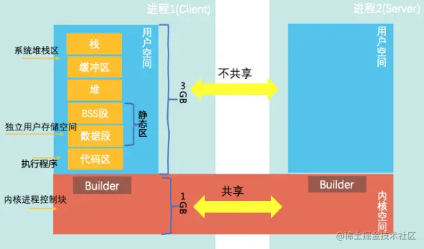 不同进程之间,用户空间是不共享,但是内核空间是可以共享。