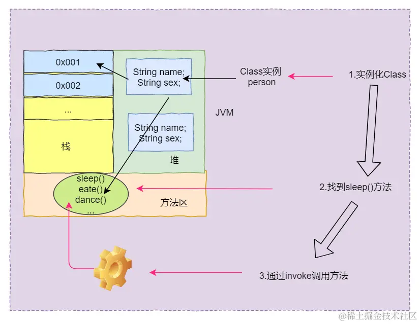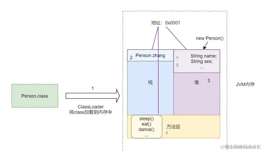 我们知道类的方法是在JVM的方法区中 ,当我们new 多个对象时,属性会另外开辟堆空间存放,而方法只有一份,不会额外消耗内存,方法就像一套指令模板,谁都可以传入数据交给它执行,然后得到对应执行结果。