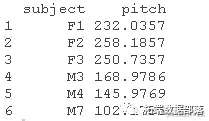 请注意,估计值与实际平均音高相当接近,我们可以看到,各受试者的实际平均音高是估计值(Intercept),而各受试者平均音高的标准差是随机效应的标准差(Std.Dev)。