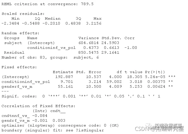 R语言如何解决线性混合模型中畸形拟合(Singular fit)的问题