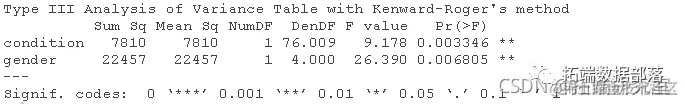 在这里,χ2分布并不总是一个很好的无效分布的近似值(在测试一些随机效应时过于保守,而在测试一些固定效应时不够保守)。