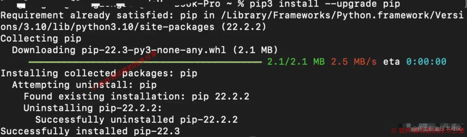 这里有一个警告,是pip3命令需要进行升级(pip是一个用于安装及维护Python包的命令)