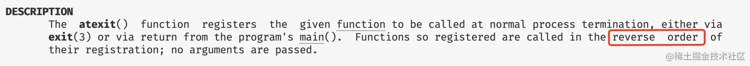 从输出的结果看确实和上面我们提到的规则一样,先注册的函数后执行。这一点再linux程序员开发手册里面也提到了。