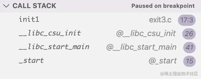 从上面的结果可以知道,程序第一个执行的函数是_start,这是在类Unix操作系统上执行的第一个函数。