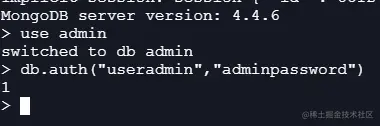 mongodb中的用户是基于身份role的,该管理员账户的 role是 userAdminAnyDatabase。 ‘userAdmin’代表用户管理身份,’AnyDatabase’ 代表可以管理任何数据库。