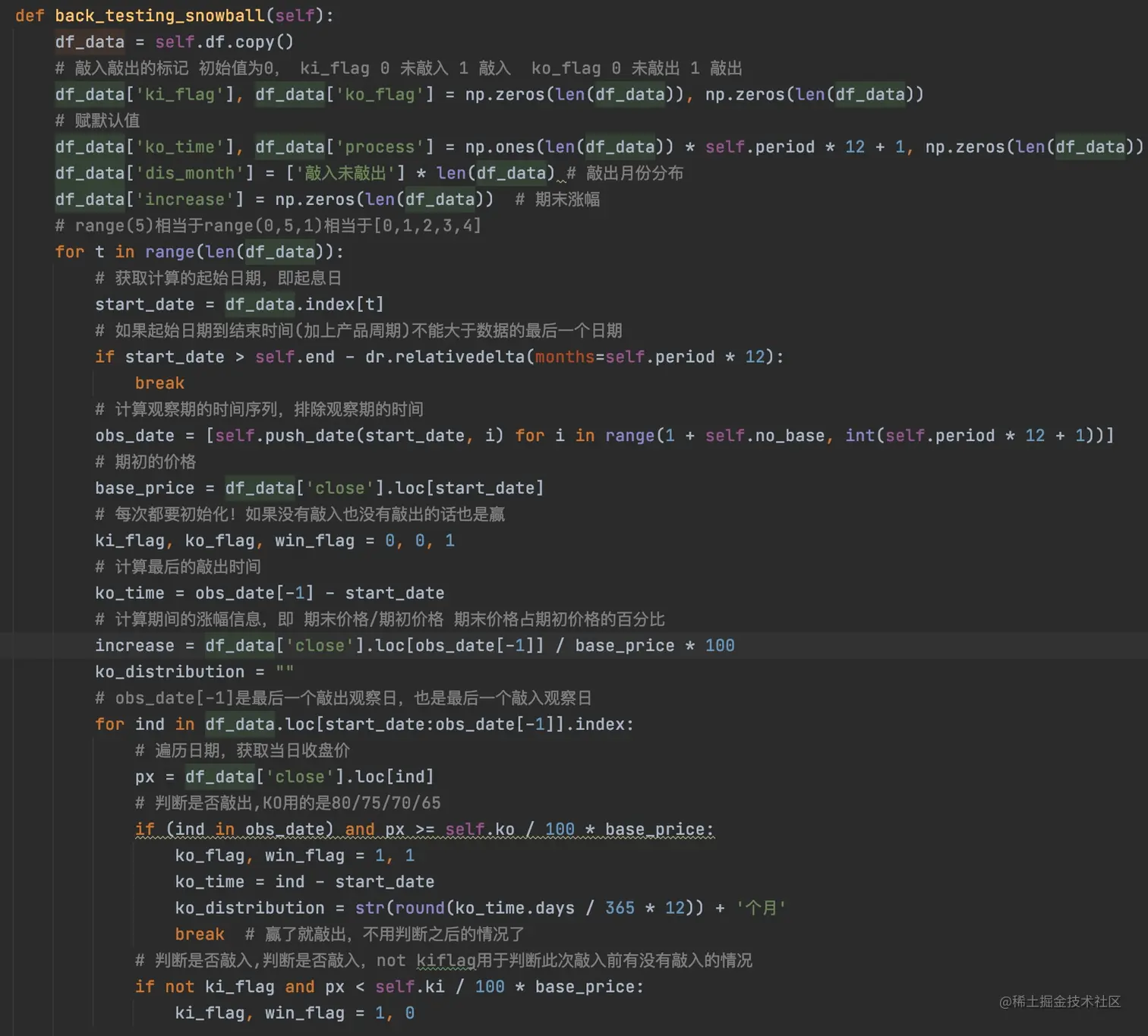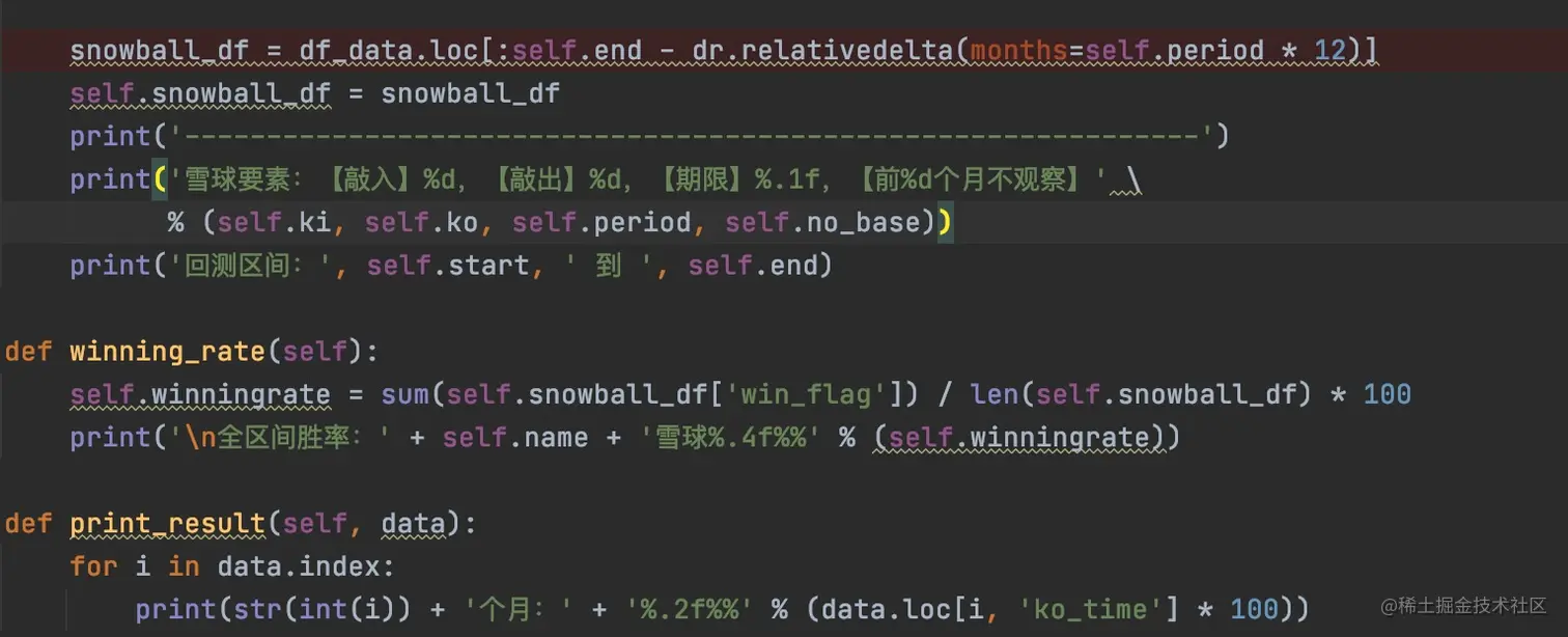 当整个循环执行完成之后,就可以收集数据计算的过程,设置当前起始日期的敲入敲出标记,是否赢的标记,还有就是涨跌幅信息。