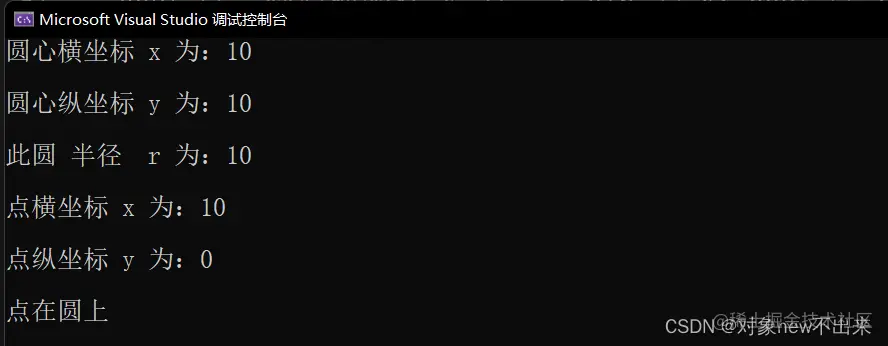 else if (distance == rDistance) cout << "点在圆上" << endl;