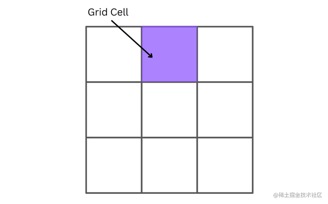 两条相邻的列网格线和两条相邻的行网格线组成是的网格单元。它是网格的单个单元,也是最小单元。下图紫色区域就是一个单元网格: