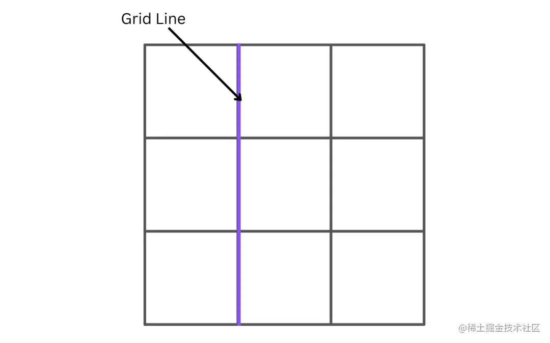 下图中的网格有 9 个网格项,有 4 条行网格线和 4 条列网格线: