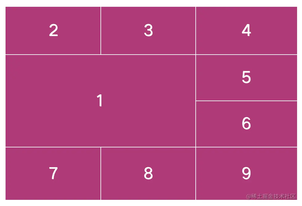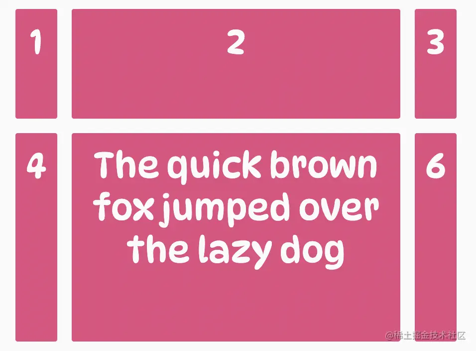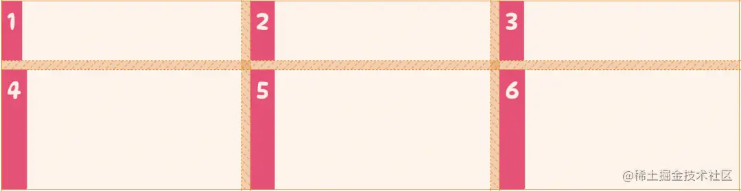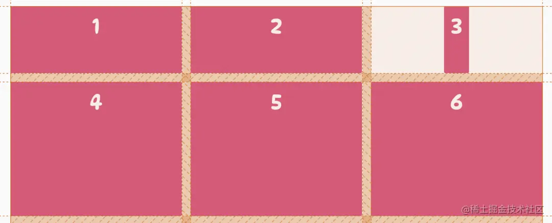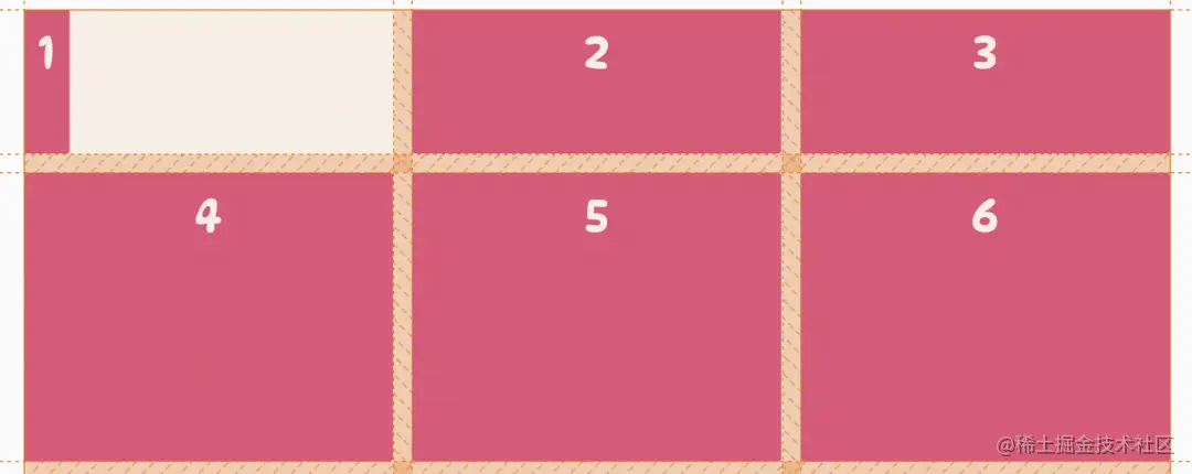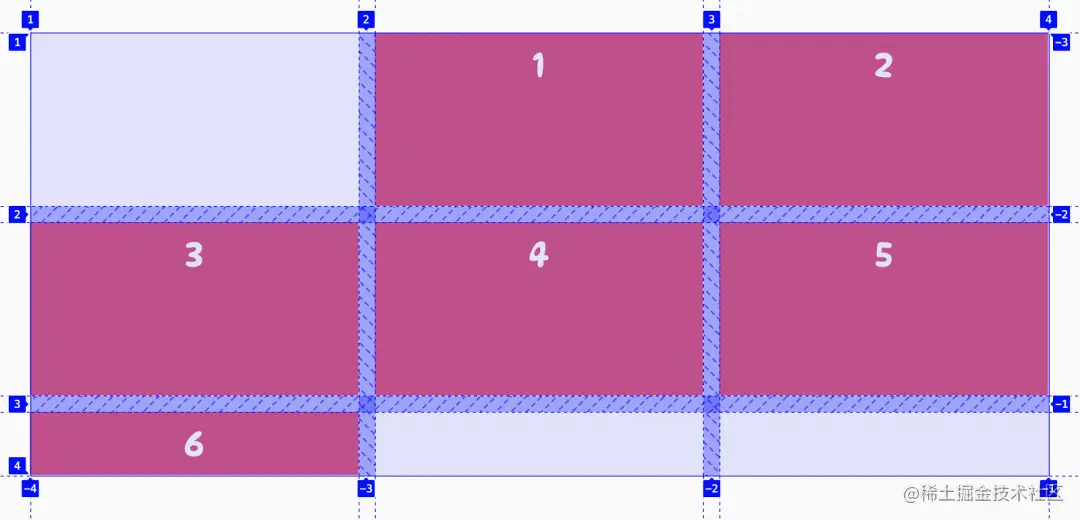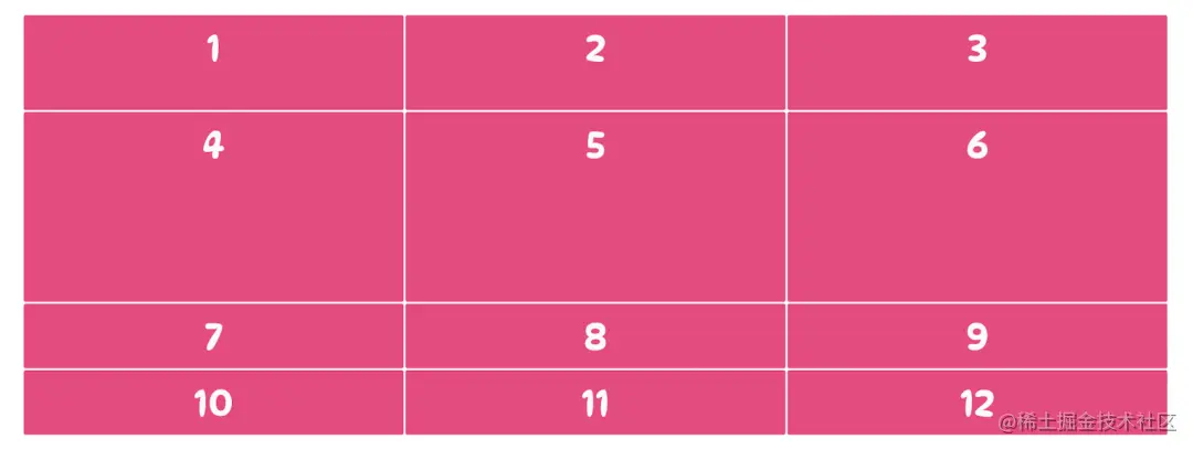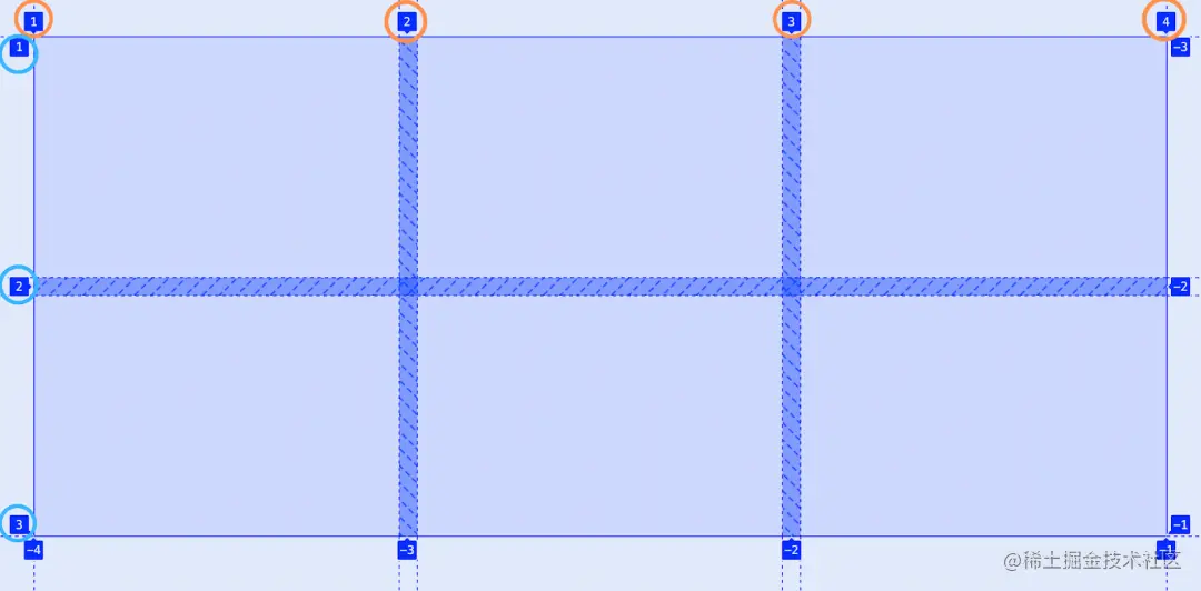 上面的代码告诉网格项从网格中的第 1 列水平跨越到第 3 列,与下面的代码等价: