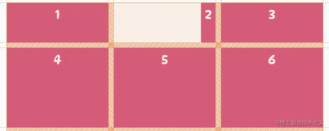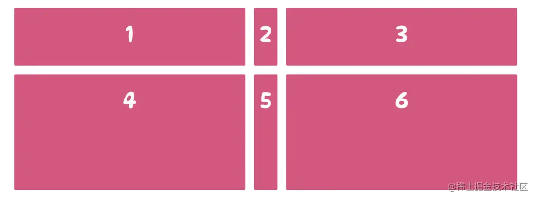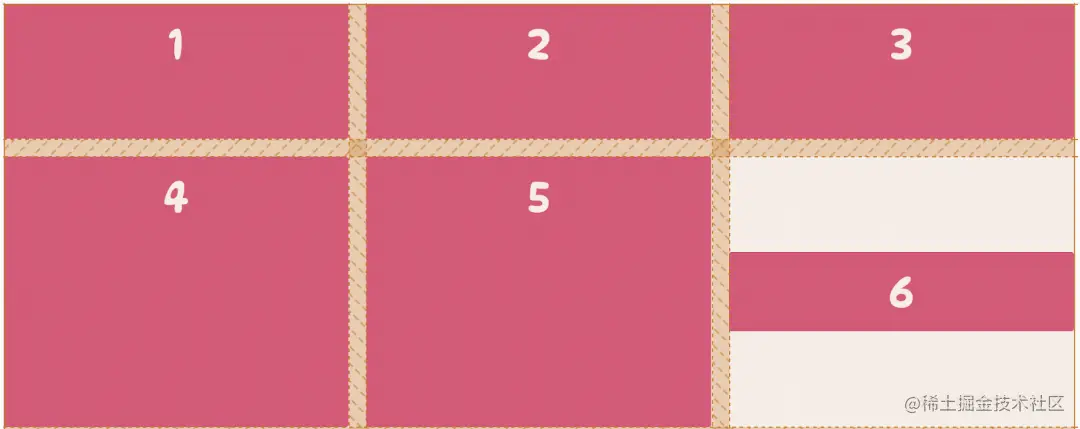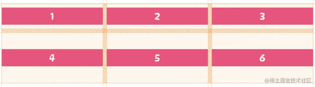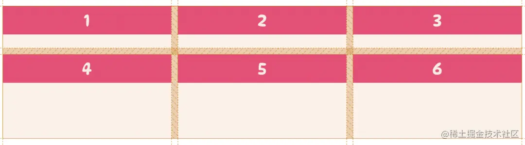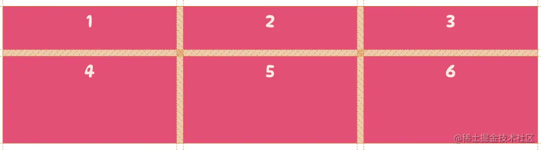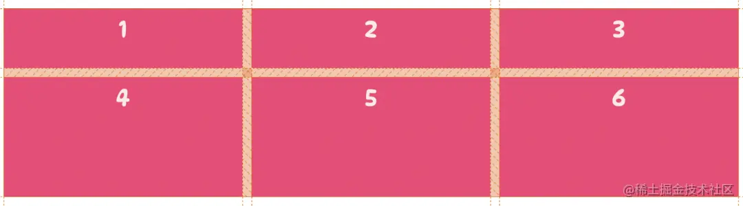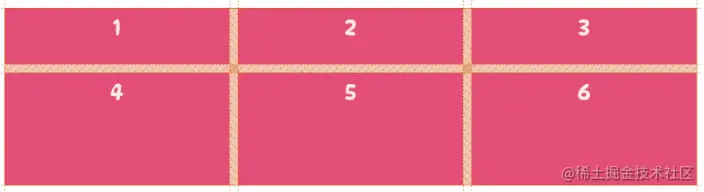 当这样设置完一个基础的网格之后,有时想要在网格项之间有一些距离,就可以通过调整网格线的大小在列和行之间添加间距。这就需要用到 row-gap 和 column-gap 属性。