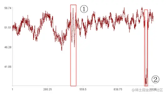 图中红色点就对应前面走势图中的红色曲线部分,也就是异常数据。